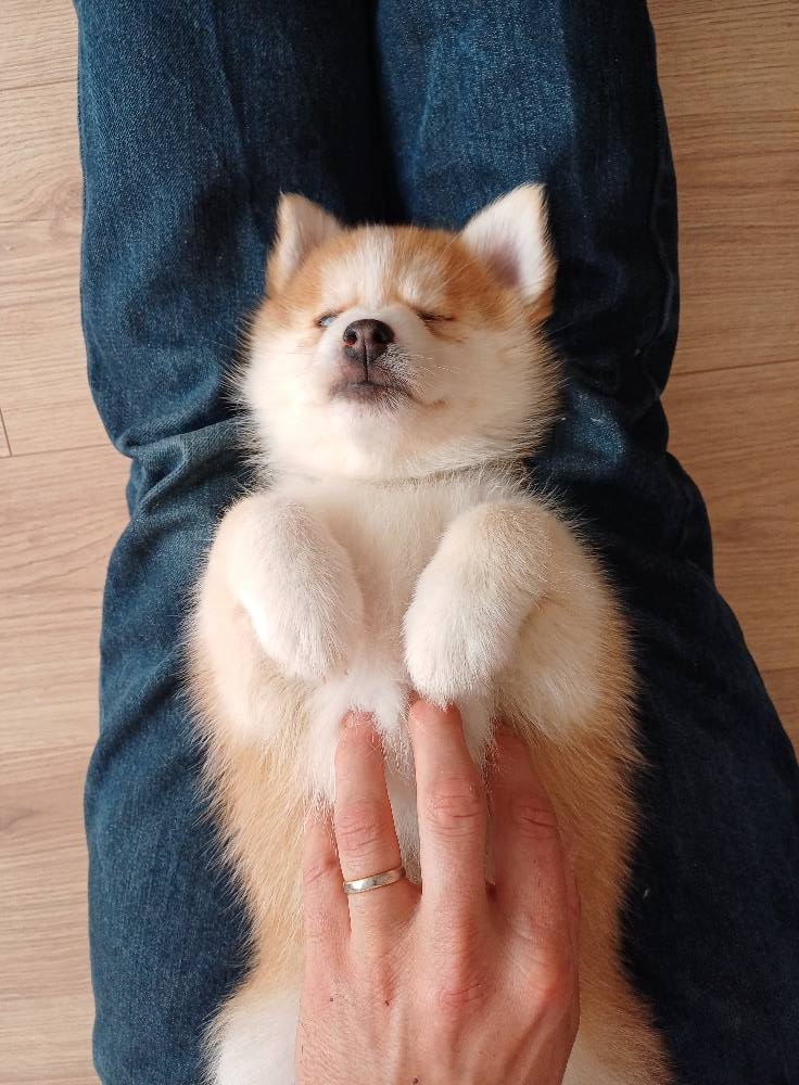 De plus, les pomsky sont magnifiques, j’ai la chance d’avoir une chienne de huit mois maintenant qui fait le succès de tout le quartier.